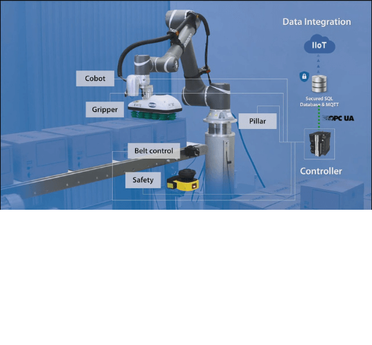 FUTURE TECH SOLUTIONS successfully executed a full robotic integration project for a leading manufacturing facility. The project included the installation of 3 Collaborative Robots (Cobots) for handling and assembly operations, along with a Palletizer Robot for automated packaging. The solution was built using the latest robotic technologies and featured an AI-powered Vision System to inspect and verify products with high accuracy. This advanced integration enhanced productivity, reduced human error, and ensured consistent product quality.